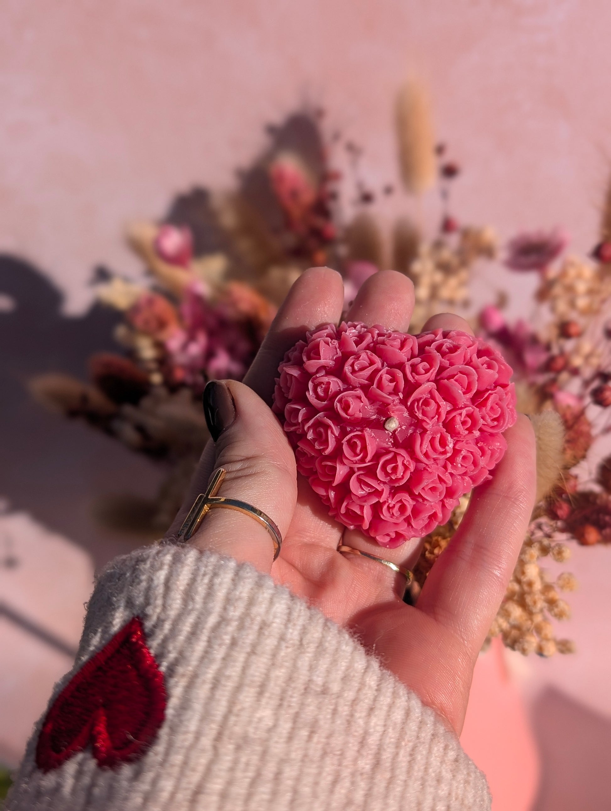 Bougie Cœur Fleuri Poudre de Riz