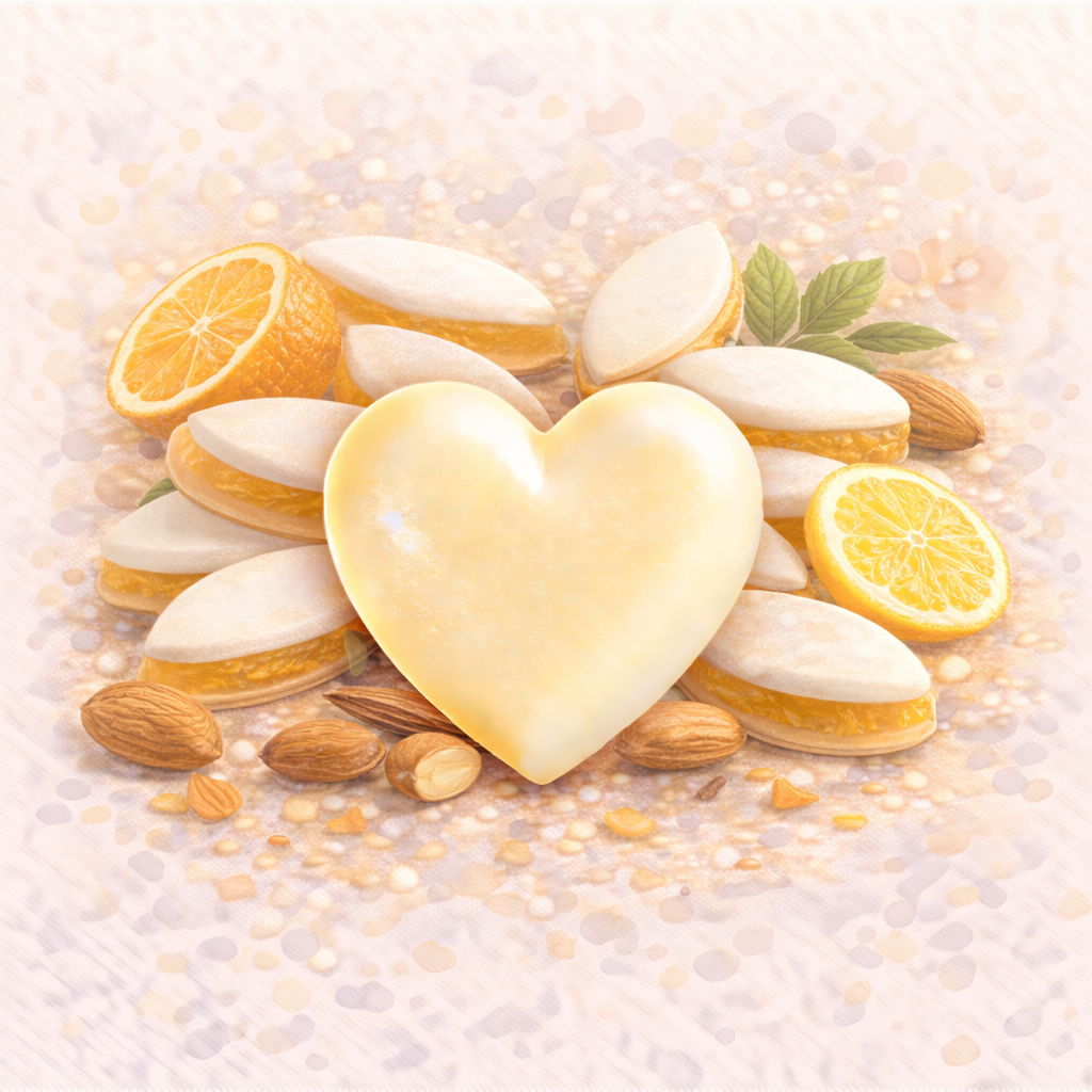 Notes de cœur : pâte d’amande sucrée